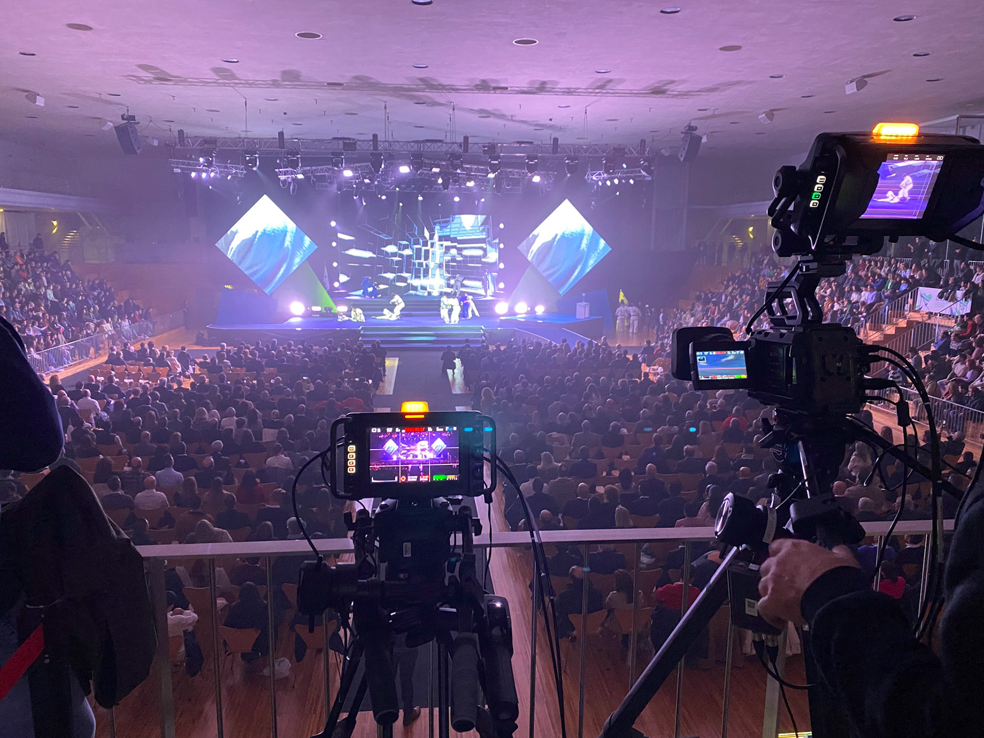 Transmissão e gravação multi-cãmara entre 2 espaços.